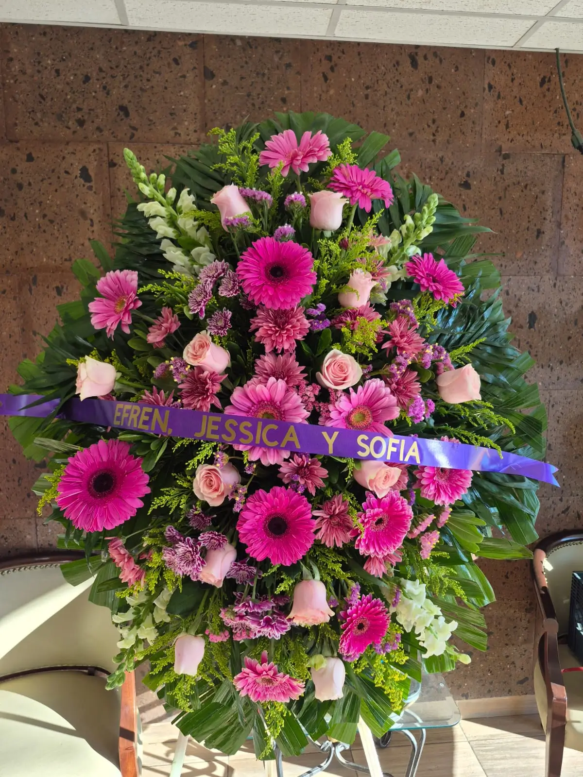 La Corona rosas, gerberas y perritos en Juárez es un tributo floral diseñado para expresar condolencias con gran dignidad y belleza. Esta composición combina la elegancia clásica de las rosas con la luminosidad de las gerberas y la distinción vertical que aportan los perritos, creando un arreglo equilibrado y solemne. En nuestra florería, seleccionamos cada tallo con rigurosa frescura para asegurar que su Corona rosas, gerberas y perritos en Juárez mantenga su esplendor durante toda la ceremonia fúnebre en Ciudad Juárez.