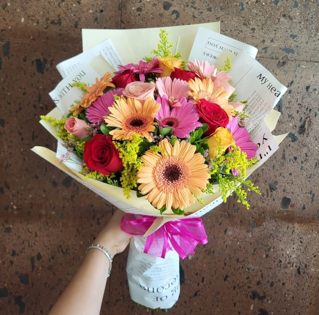 Ramo 12 rosas y 12 gerberas. cantidad