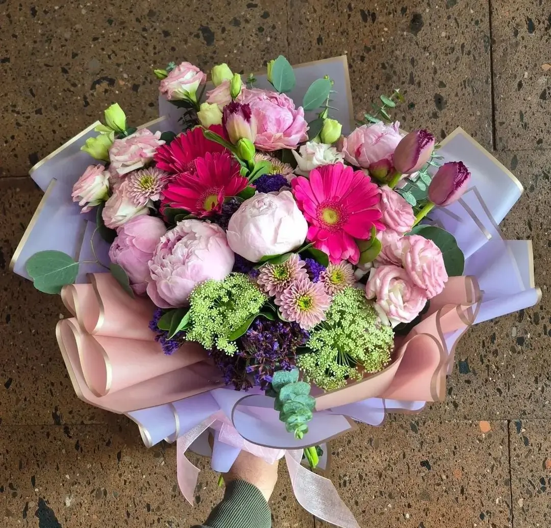 Ramo peonias, tulipanes, lisianthus y gerberas